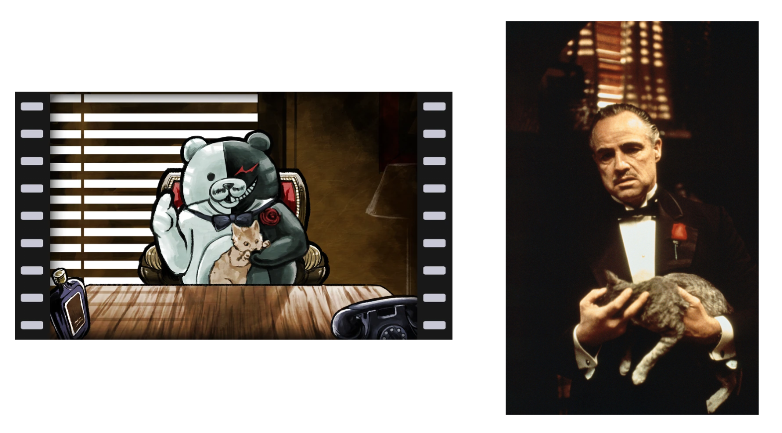 实际上有很多玩家都能发现,V3里的黑白熊剧场CG,都在neta著名电影,并理解为这是一种无伤大雅的“对流行作品的反讽与插科打诨”。